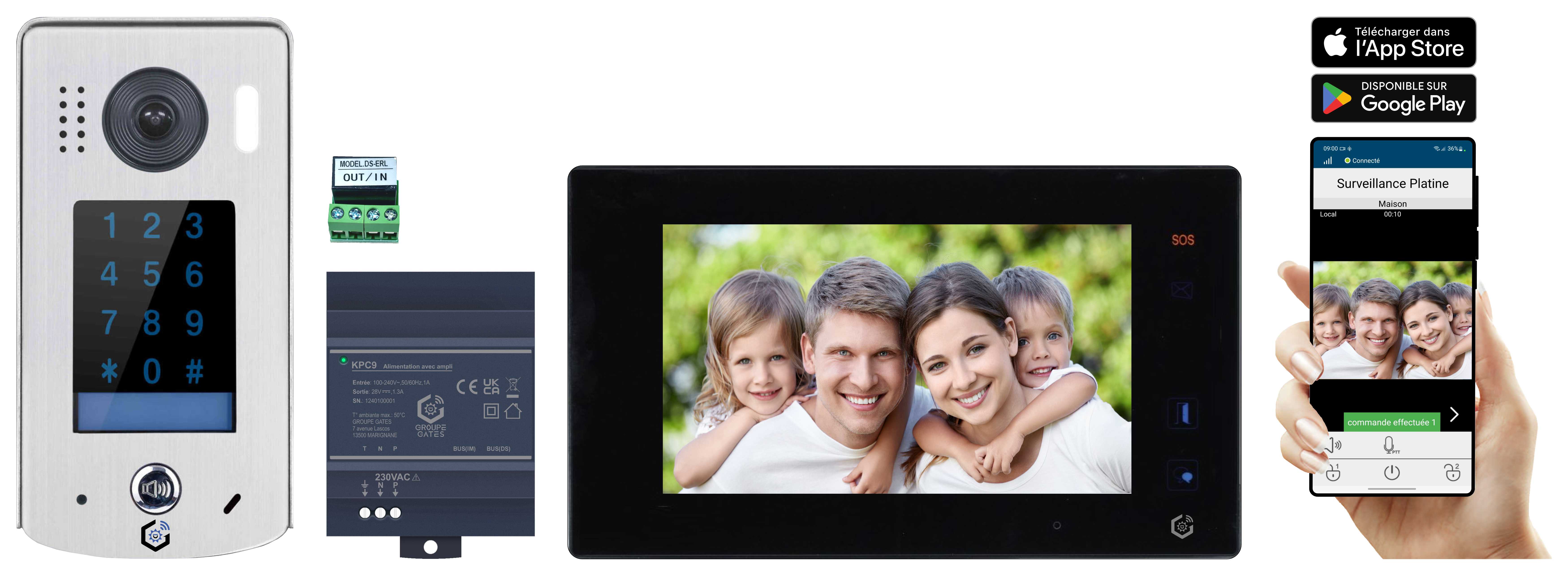 - Connexion Wi-Fi via Internet pour l'audio, la vidéo et l'ouverture de porte