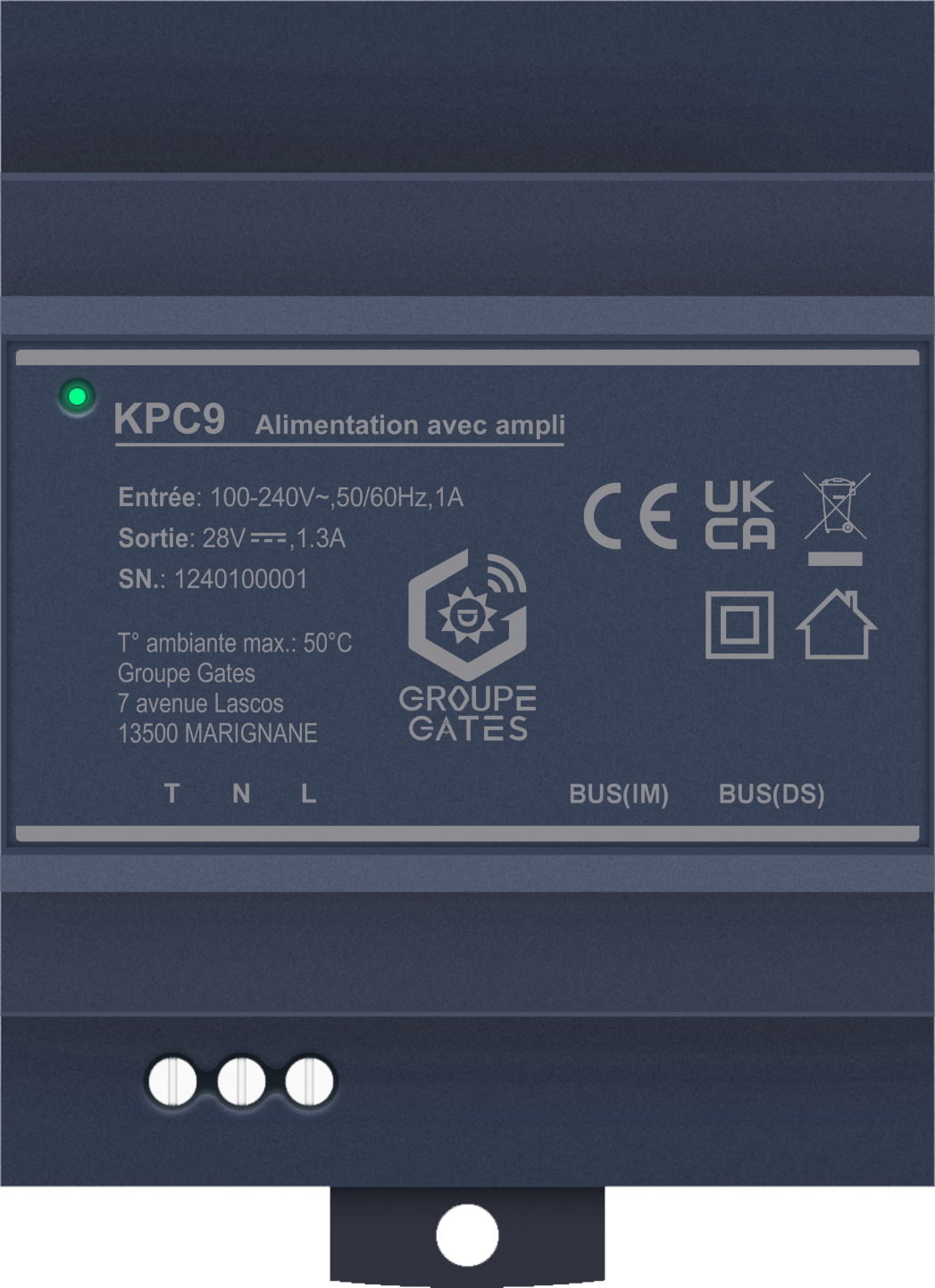 L'alimentation KPC9 fournit une alimentation régulée avec une sortie de 28VDC, garantissant un fonctionnement optimal de votre système de visiophonie, tout en assurant une sécurité et une performance constantes.