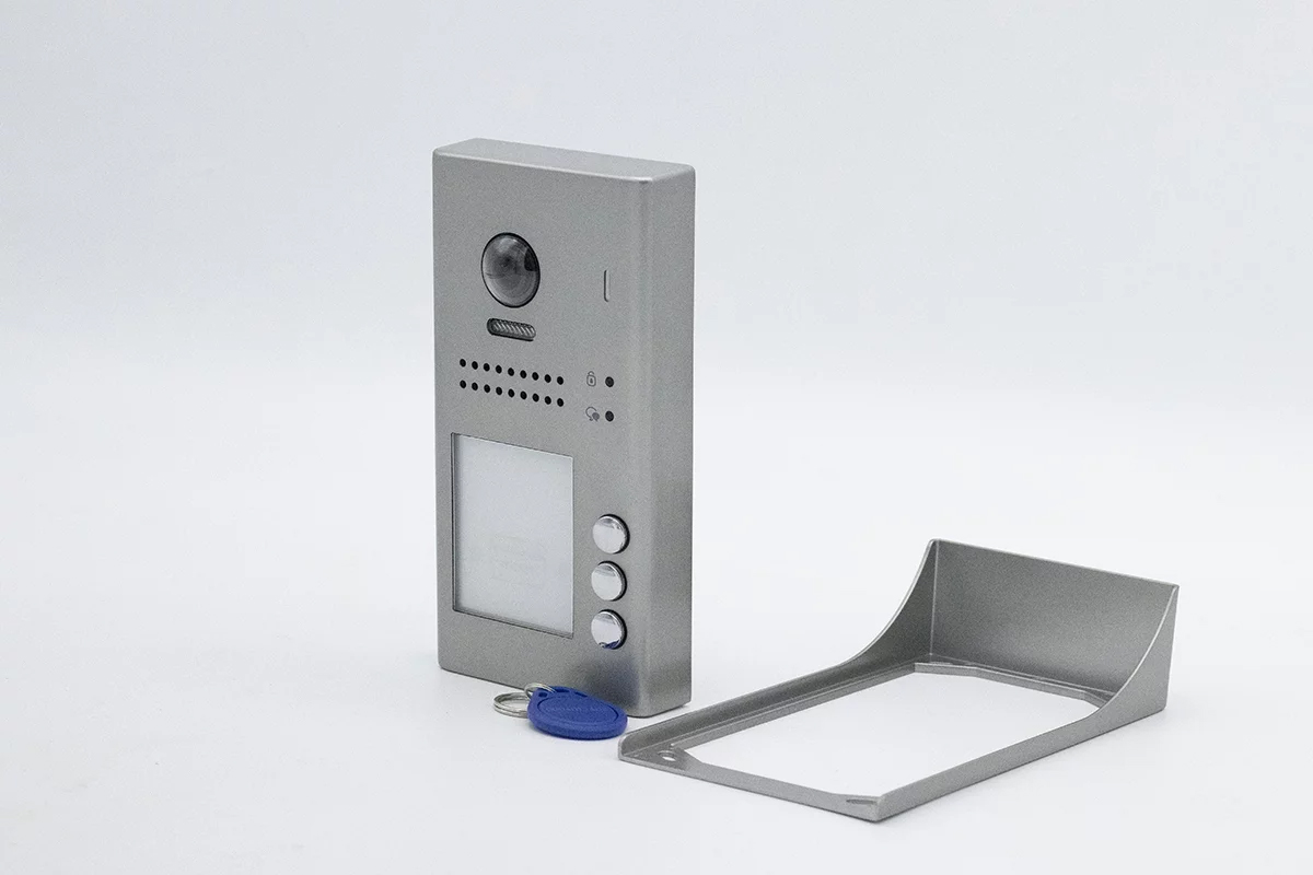 DT-607P-3 - CAMERA SAILLIE DIGITONE IP65 COULEUR 3 BOUTONS FACADE ZAMAC AVEC VISIERE + 5 BADGES