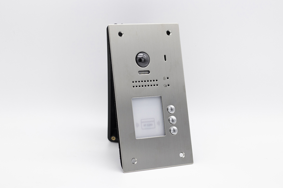 La platine Digitone DT-607PE-3 est une platine de rue saillie avec TROIS bouton d'appel, caméra ultra grand angle 170° (fisheye) et lecteur de badge. Il s'associe à 3 moniteurs ou plus, pour vous permettre de recevoir les appels vidéos des visiteurs et leur ouvrir à distance.