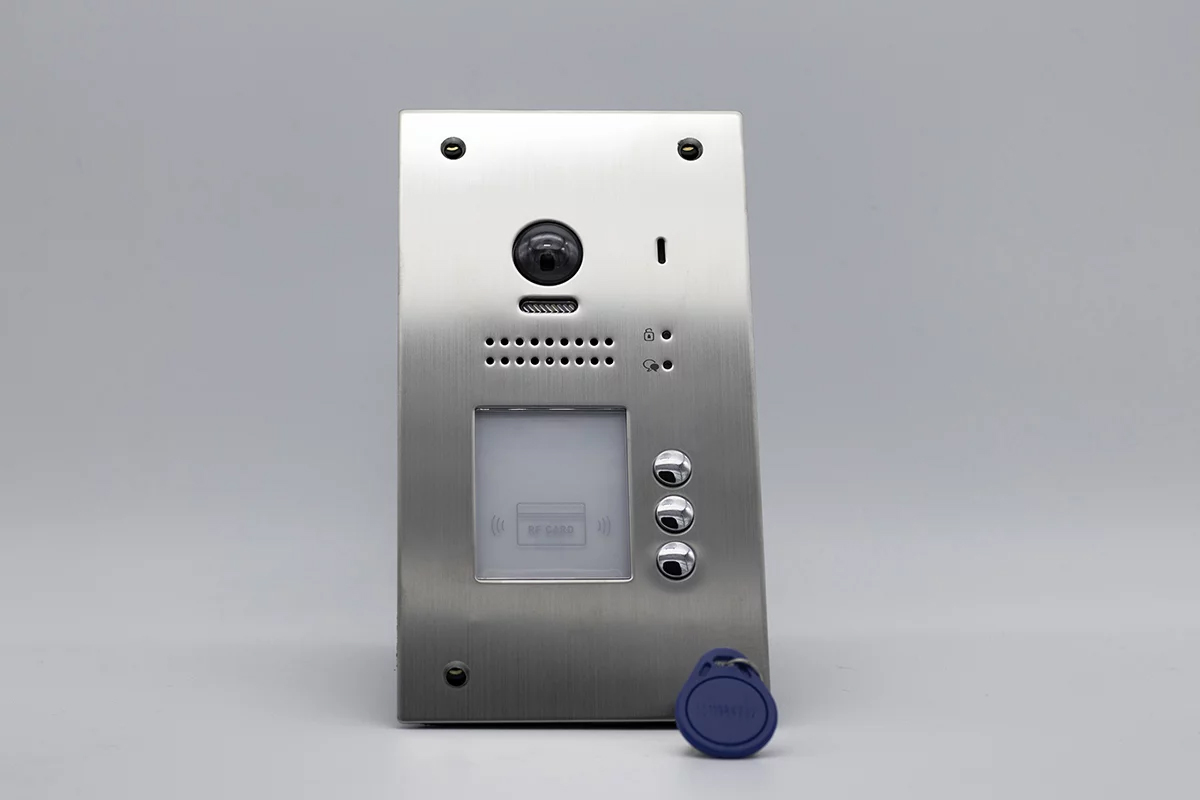 DT-607PE-3 - CAMERA ENCASTRÉE DIGITONE IP65 COULEUR 3 BOUTONS FACADE ZAMAC AVEC VISIERE + 5 BADGES
