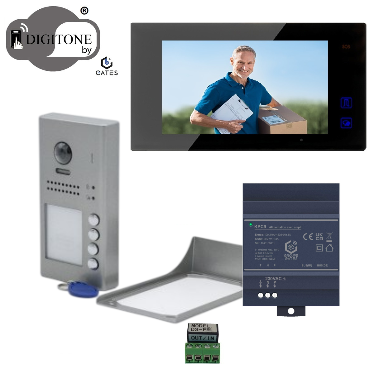 Ce portier vidéo 7 pouces Digitone vous permet de répondre au visiteur qui se présente depuis le moniteur vidéo intérieur. La commande de gâche électrique ou d'automatisme de portail/porte de garage intégrée, permet d'ouvrir depuis ce même moniteur un portillon ou un portail.